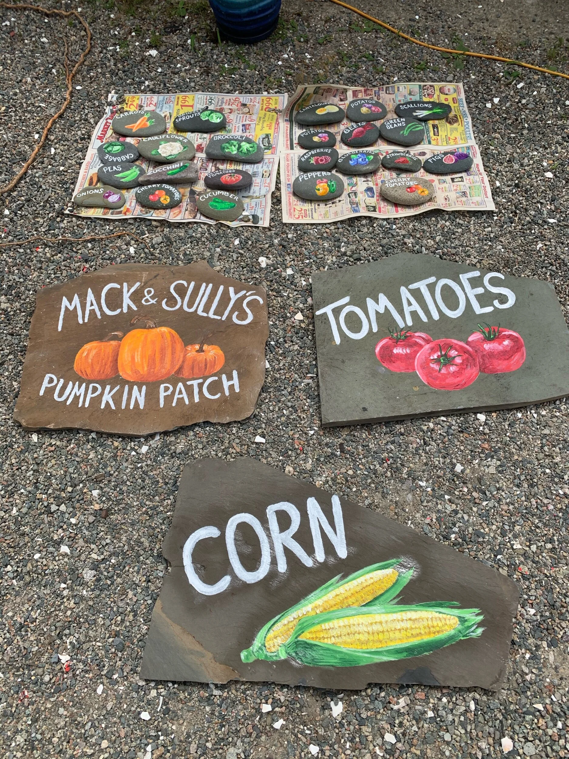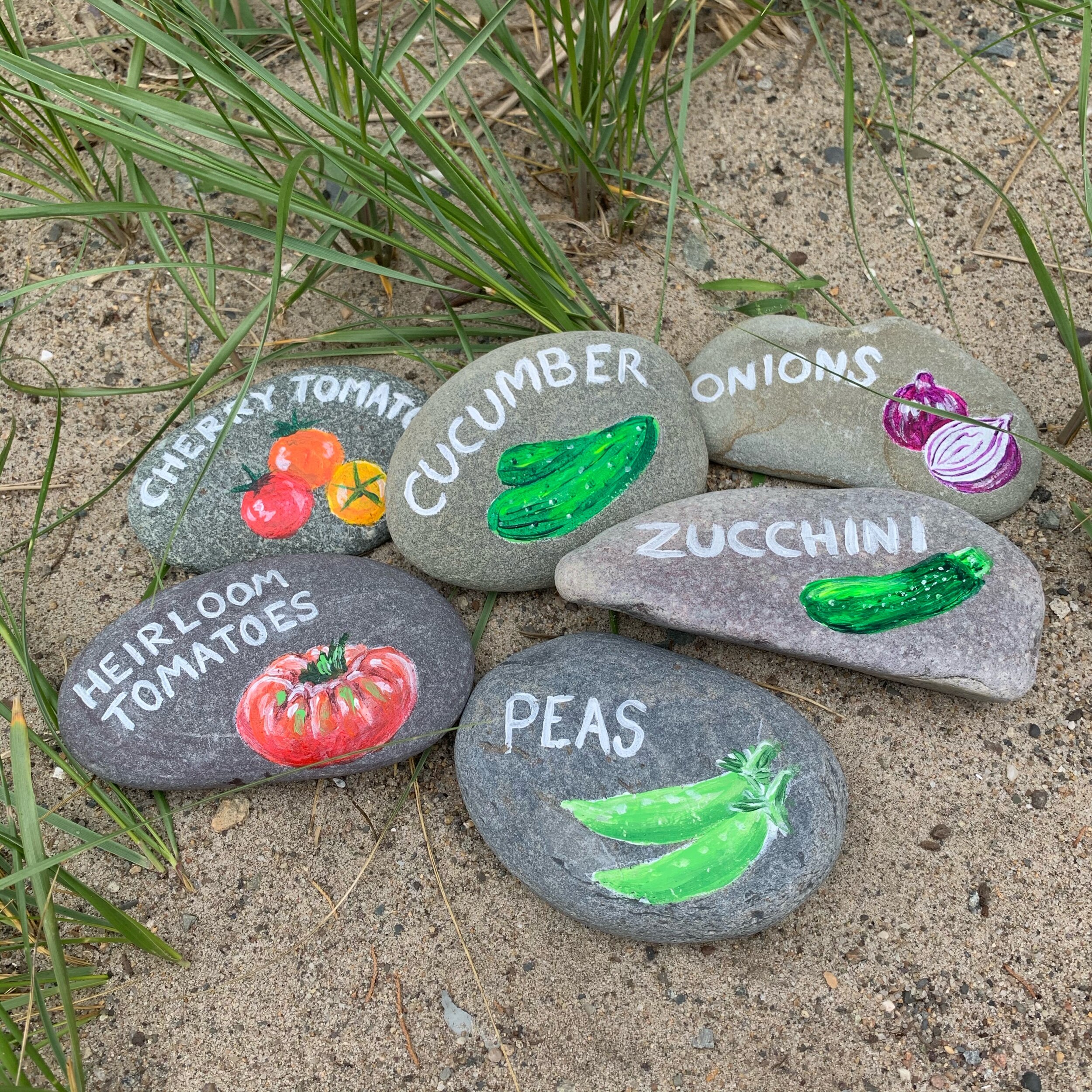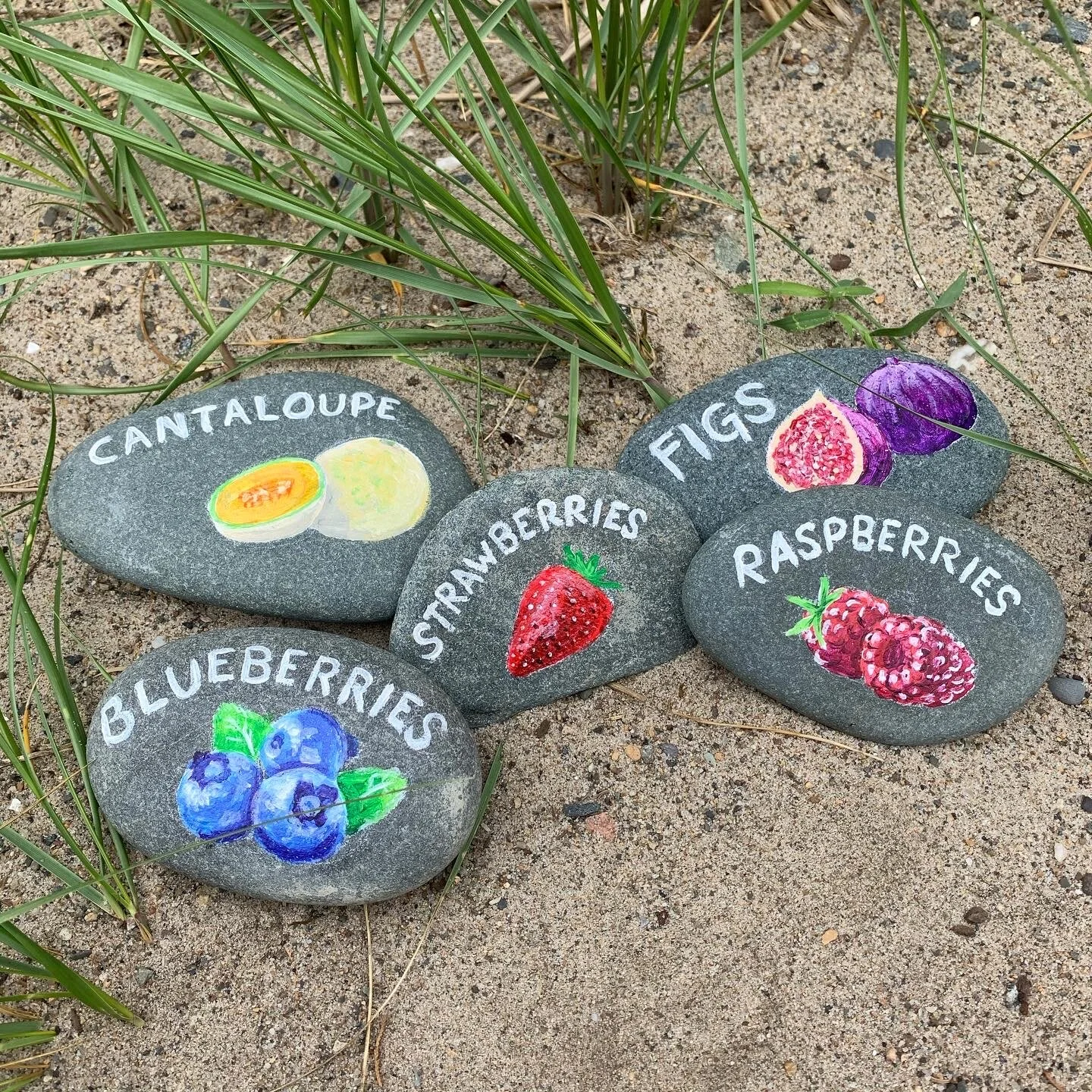 Once I completed my own set of rocks, (Tomatoes, Onions, Cucumbers, Eggplant and Peas) I shared them on Instagram and got a great response! From there I received tons of painted rock requests and kept busy painting throughout the summer. I even made enough to sign up for a class that I’ve been wanting to take.